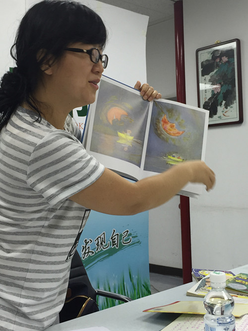 什么样的绘本是好的绘本?奶牛妈妈现场拿出事先准备的两类绘本样本,进行对比。首先看内容,其次是绘图,再次是印刷质量。