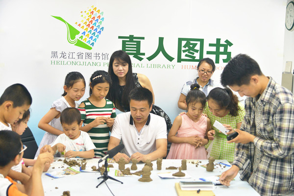 本期真人图书是为小朋友特别开设的实践专场,不仅吸引了近20位小朋友,也有10多位成年人参与。泥人卢从中国古老的民间艺术出发,为读者朋友们简单讲解了中国泥塑的发展历程,泥塑的分类等相关知识。结合自己走上泥塑道路的经历,泥人卢强调了手工制作对小朋友成长阶段的益处。在现场朋友们的热烈欢迎下,泥人卢带领小朋友们开始了制作之旅。每位小朋友都对捏泥巴表现了极大的兴趣,他们围坐在泥人卢的身边迫不及待地开始了捏泥巴,经过最初的生疏后,小朋友们渐渐进入角色,最后,竟然有7位小朋友捏成了自己的作品,有二个胖娃,一个机器猫,一个舰艇,一个馒头组合等。经过小朋友自己投票选举,机器猫夺冠,获得泥人卢亲手制作的鱼娃作为奖励。