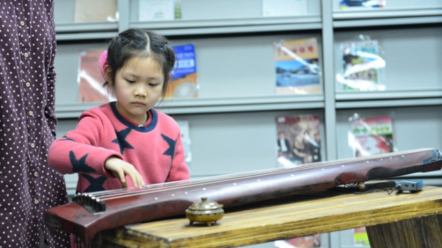 张老师说,古琴,又称瑶琴、玉琴、丝桐和七弦琴,是中国汉民族传统拨弦乐器,有三千年以上历史,属于八音中的丝。古琴音域宽广,音色深沉,余音悠远。自古“琴”为其特指,19世纪20年代起为了与钢琴区别而改称古琴。初为5弦,汉朝起定制为7弦,且有标志音律的13个徽,亦为礼器和乐律法器。琴是汉文化中地位最崇高的乐器,有“士无故不撤琴瑟”和“左琴右书”之说。位列中国传统文化四艺“琴棋书画”之首,被文人视为高雅的代表,亦为文人吟唱时的伴奏乐器,自古以来一直是许多文人必备的知识和必修的科目。