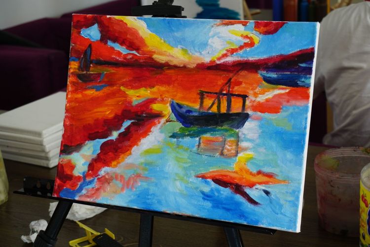 省图油画沙龙的第八期活动在6月的最后一天如期进行,本次课程,大家在老师的指导下认识了新的绘画工具——调色刀,由杨博老师在前面示范,整节课节奏紧凑,画刀时而用力,时而拖拽,表现灵活,尽显张力。