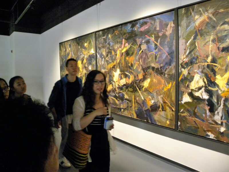 此外,学员们还跟随两位老师,一同参观了许多优秀作品,认识了很多中国优秀画家,有革命的现实主义、浪漫主义画家詹建俊、表现装饰性美感的画家闻立鹏、农民画家曹新林、表现性写实绘画的罗中立、以葵花喻人和社会的中国美术学院院长许江等等,还有多位画家的不同画作不同风格都给予了学员不同角度的讲解,在这当中也有很多沙龙以外的人士自始至终忠心跟随,总之,大家在两位老师的深刻讲解下,对画作有了更深层次的理解,在表现手法上,也有了更丰富的认识,避免了独自观看名家画作时的盲目与对此次难得机会的浪费。