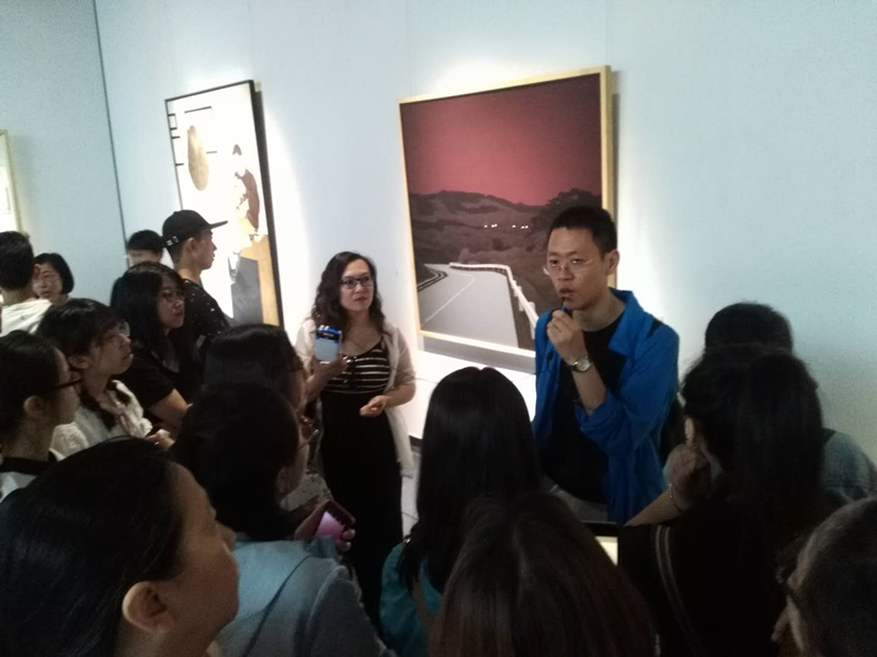 接下来就是著名画家冷军的作品参观了,他的超现实主义画法在中国画坛独树一帜,极端写实的风格,令大家忍不住凑近了仔细观察。杨博老师为大家介绍了冷军与国外超写实画家的区别,明秋老师从创作角度做了讲解。