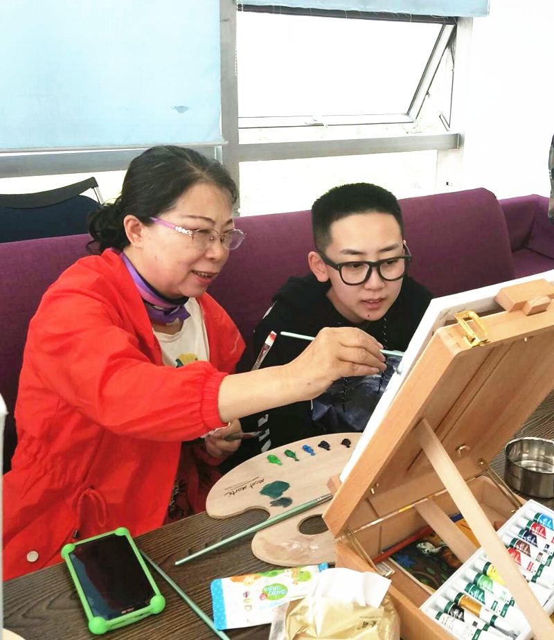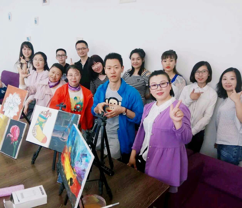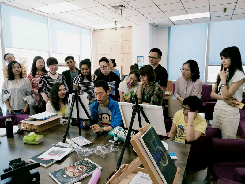 接下来是学员们自己动手绘画,由明秋老师、杨博老师和李木子老师进行指导。大家画的热情投入。