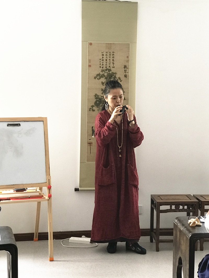 龙江书院第一期陶笛课程于2018年7月14日正式开讲,经过历时二个月紧张而又充实的学习之旅,2018年9月1日迎来了结业仪式。结业仪式前的最后一节课课堂上,徐燕老师依然认真地检查每个学生的吹奏曲目,指出不足,教授吹奏技巧,学员们格外仔细地聆听老师的教诲,珍惜这最后一课的美好时光。
