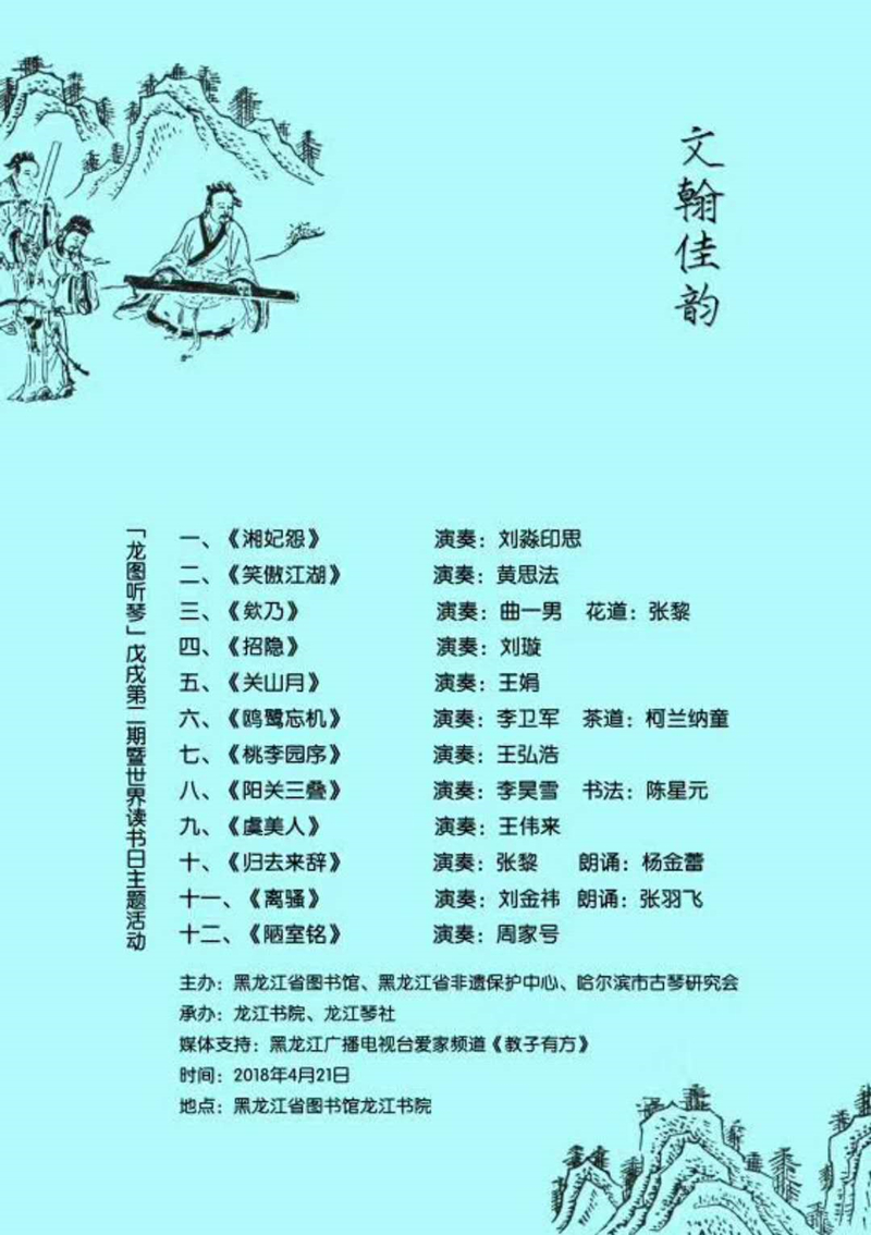 龙江书院| 活动报道文翰佳韵——龙图听琴戊戌古琴雅集暨世界读书日主题活动