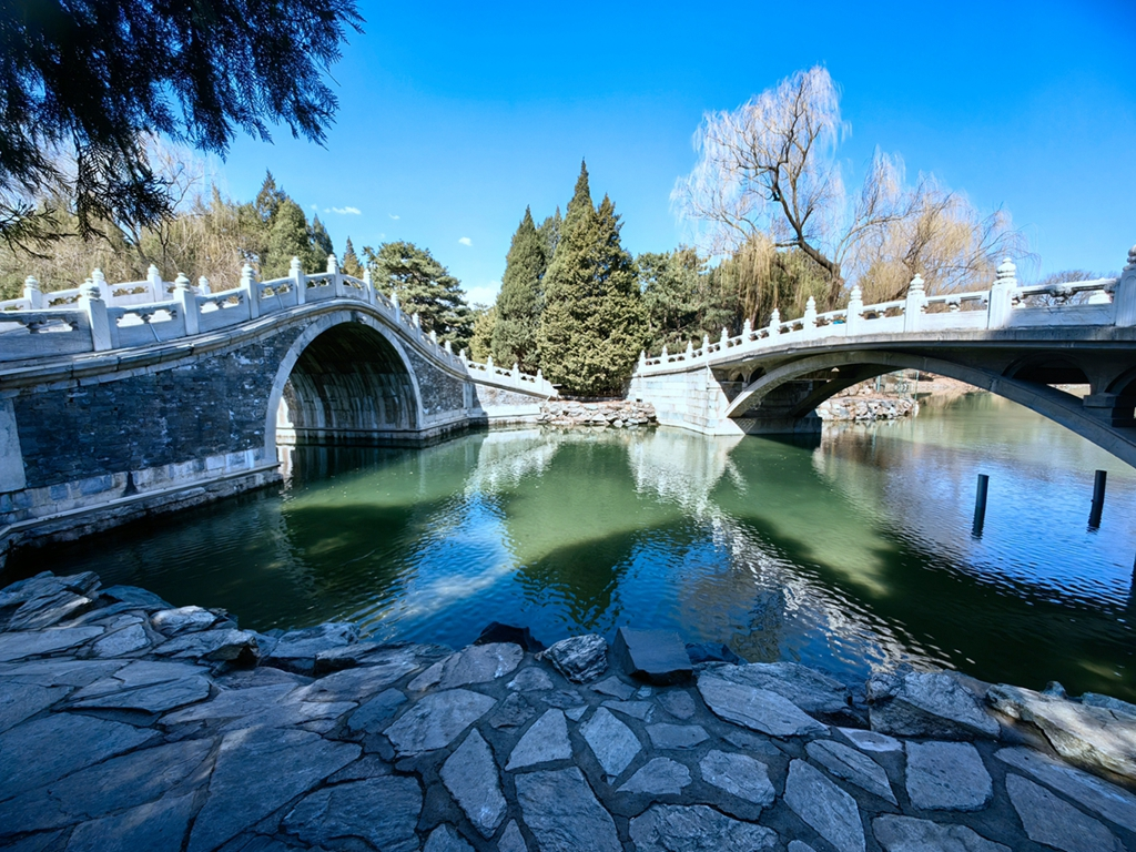 一夜东风起,一棵树,催绿了另一棵树;一枝新芽,望向另一树繁花。北京的春天就这样展示在眼前,难得的蓝天碧水,准备踏访一下皇家建筑颐和园。从新宫门进入,远远看到十七孔桥在碧波上荡漾。柳树的枝条变得柔软起来,春风似乎把一切都唤醒了。