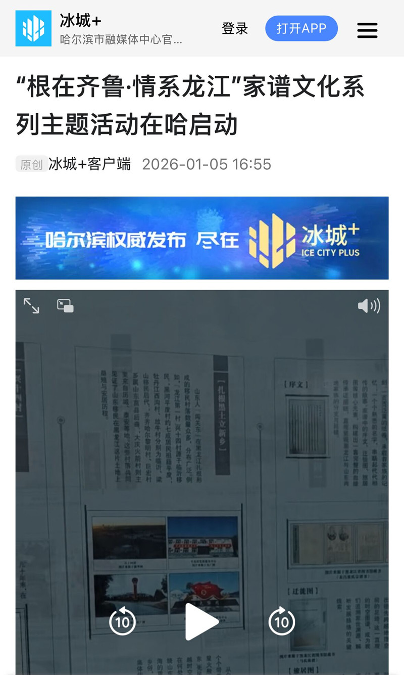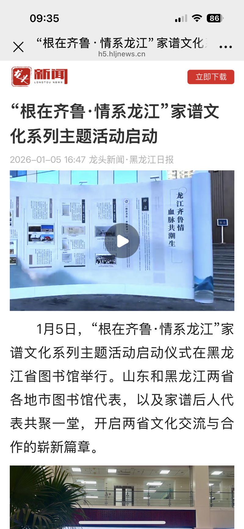 “根在齐鲁·情系龙江”家谱文化系列主题活动启动01-07/ 2026 -