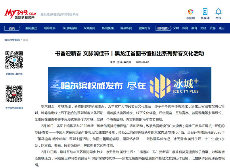 书香迎新春 文脉润佳节丨黑龙江省图书馆推出系列新春文化活动02-10/ 2026 -