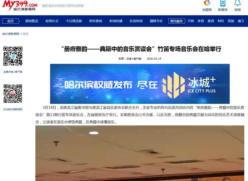 “册府雅韵——典籍中的音乐赏读会”竹笛专场音乐会在哈举行03-14/ 2026 -