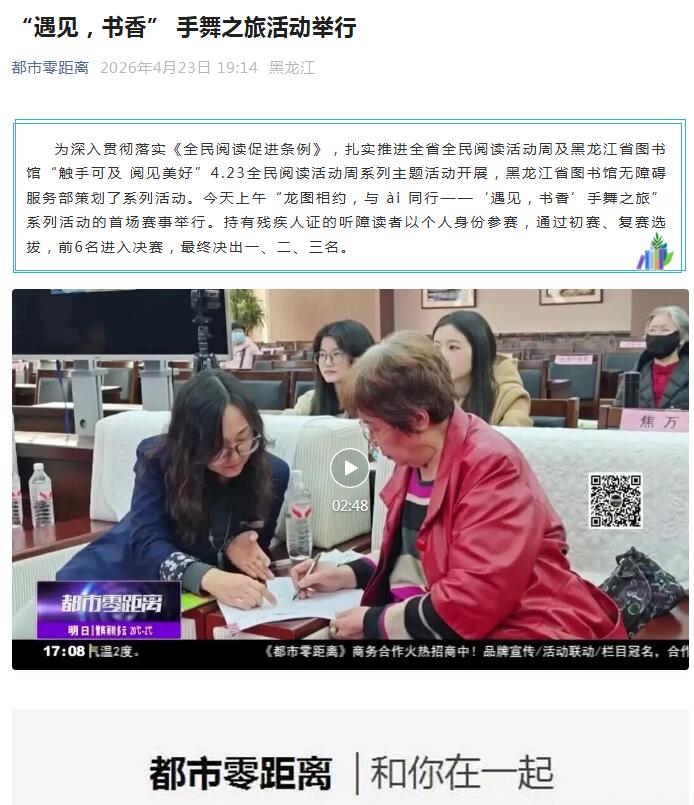 龙图相约 与ai同行丨“遇见,书香”手舞之旅国家通用手语快闪赛举行04-24/ 2026 -