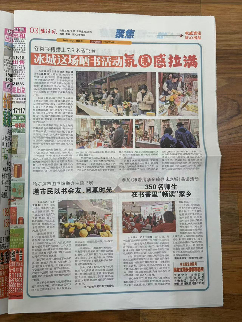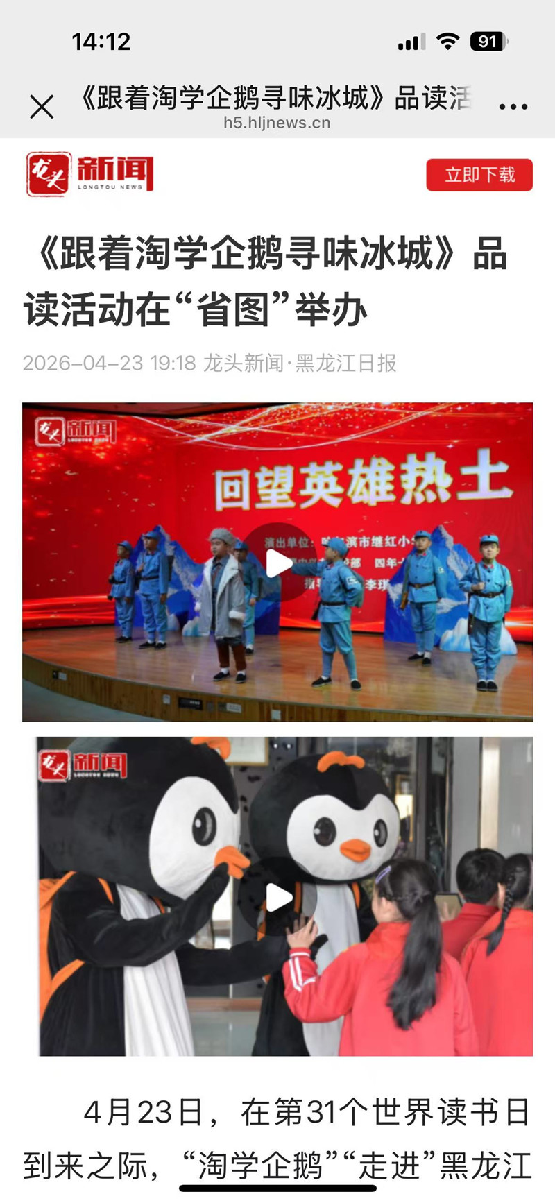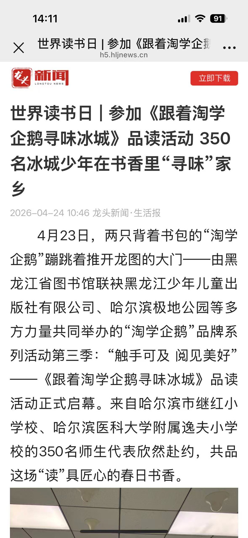 世界读书日 | 参加《跟着淘学企鹅寻味冰城》品读活动 350名冰城少年在书香里“寻味”家乡04-24/ 2026 -