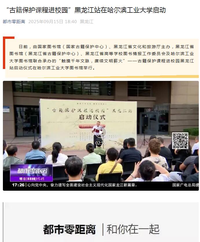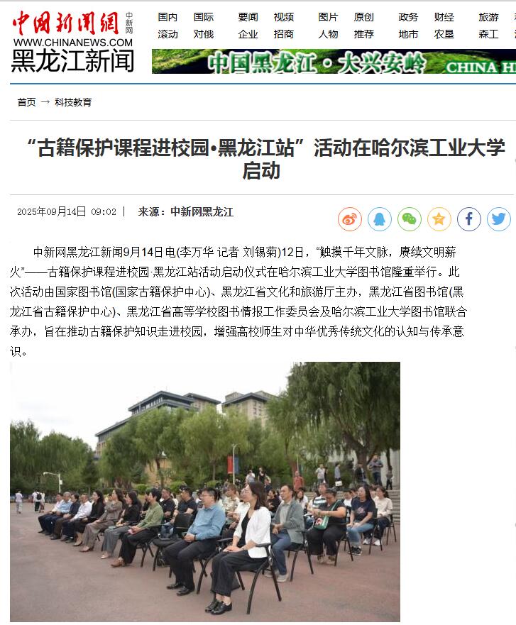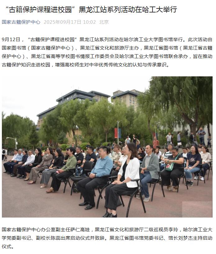 “古籍保护课程进校园”黑龙江站在哈尔滨工业大学启动09-17/ 2025 -