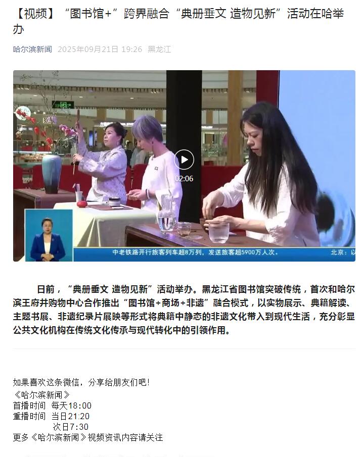 【视频】“图书馆+”跨界融合“典册垂文 造物见新”活动在哈举办09-24/ 2025 -