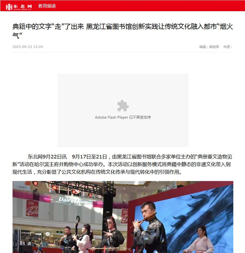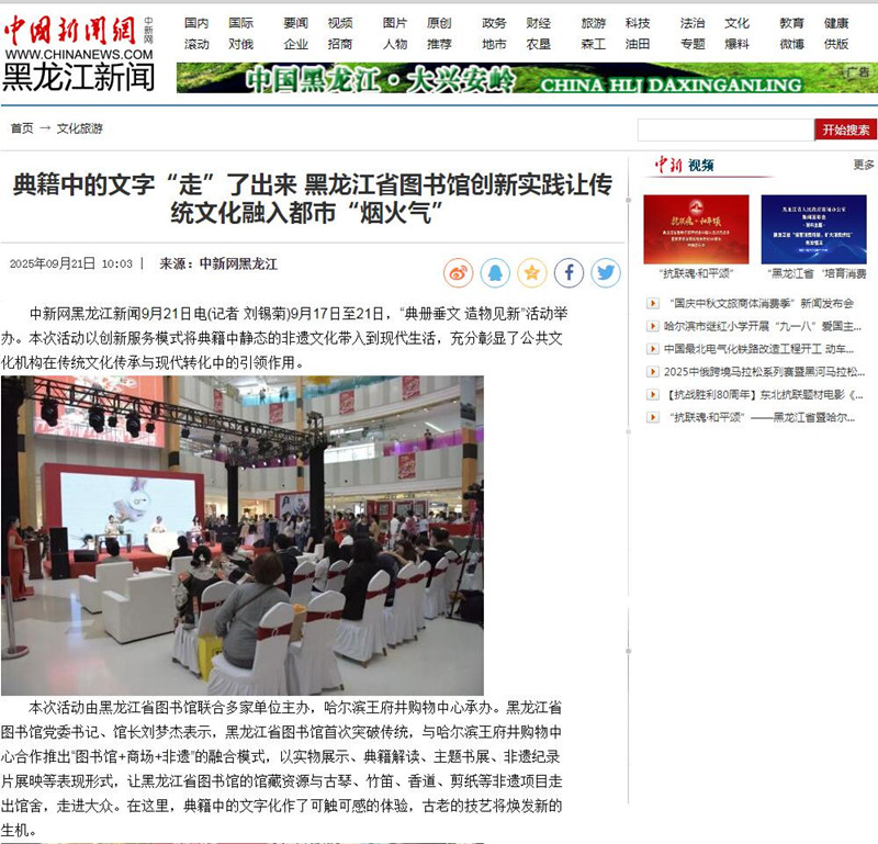 典籍中的文字“走”了出来 黑龙江省图书馆创新实践让传统文化融入都市“烟火气”09-24/ 2025 -
