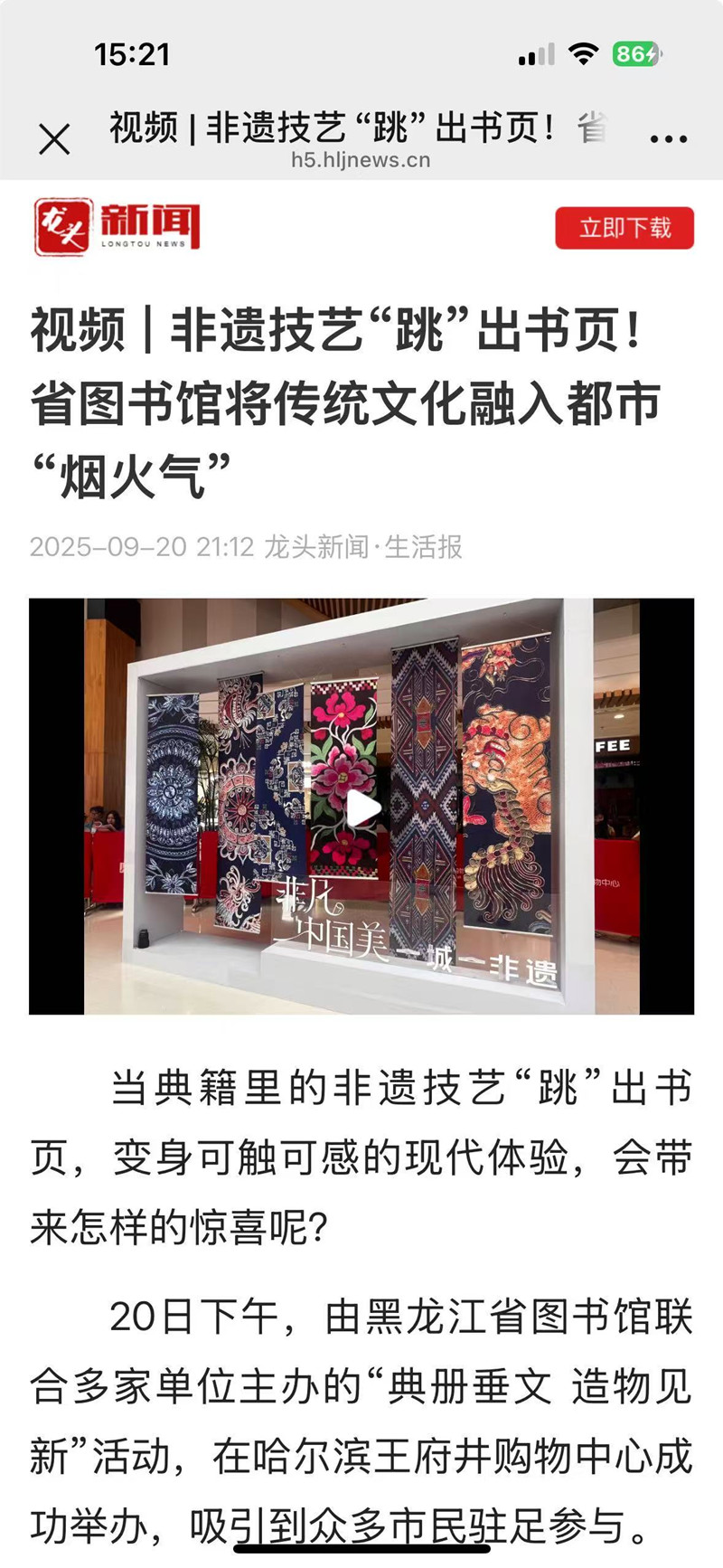 视频 | 非遗技艺“跳”出书页!省图书馆将传统文化融入都市“烟火气”09-24/ 2025 -