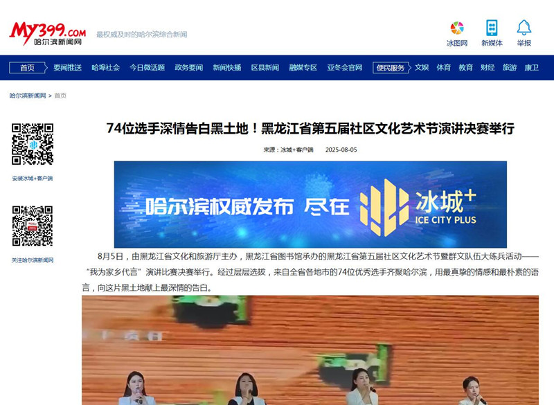 74位选手深情告白黑土地!黑龙江省第五届社区文化艺术节演讲决赛举行08-11/ 2025 -
