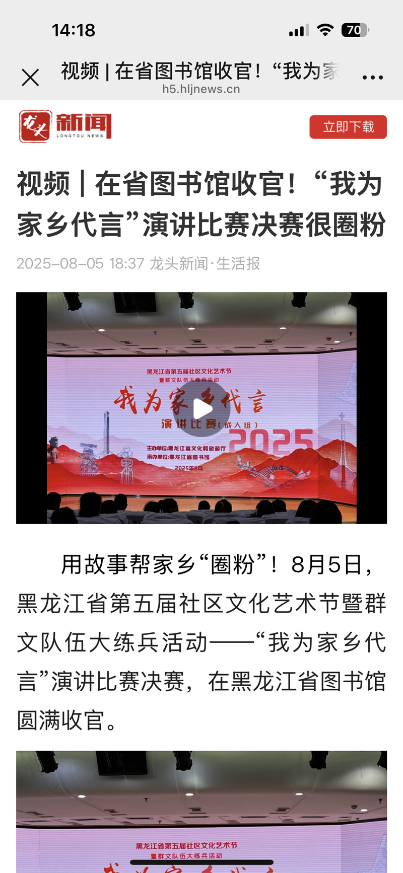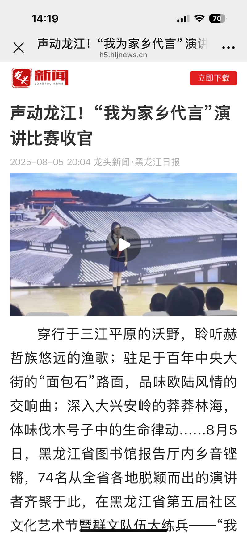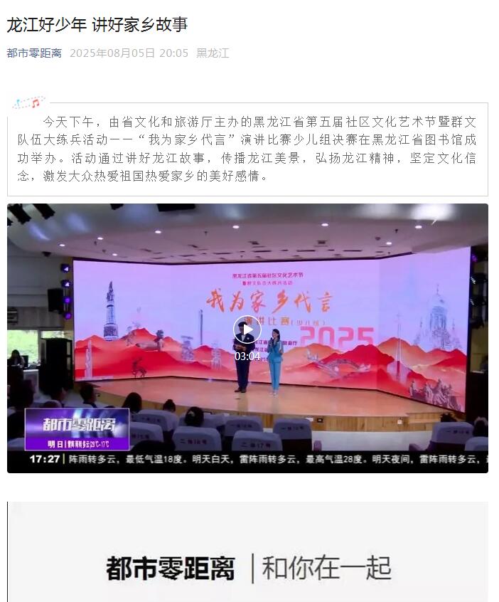 声动龙江!“我为家乡代言”演讲比赛收官08-11/ 2025 -