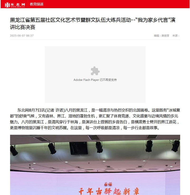 黑龙江省第五届社区文化艺术节暨群文队伍大练兵活动——“我为家乡代言”演讲比赛决赛启动08-11/ 2025 -