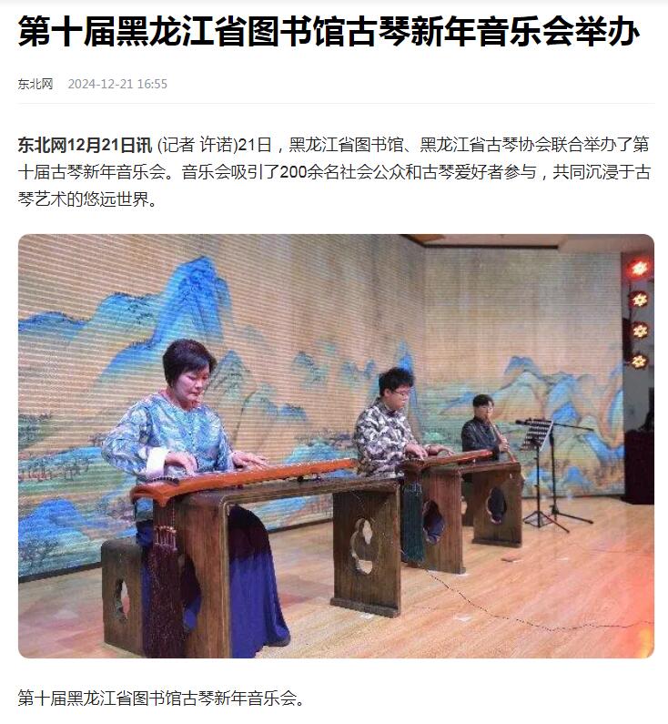 第十届黑龙江省图书馆古琴新年音乐会举办12-23/ 2024 -