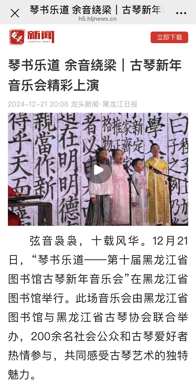 弦上新岁 琴书乐道|第十届黑龙江省图书馆古琴新年音乐会举行12-23/ 2024 -