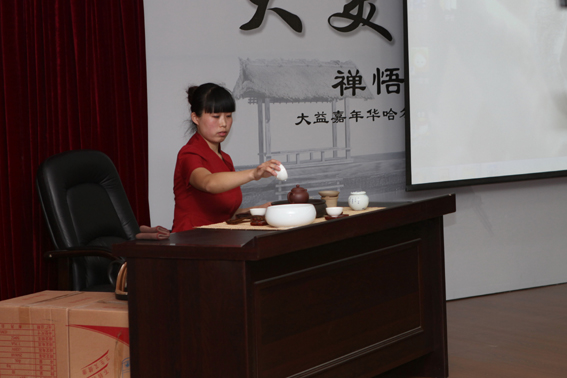 活动开始黑龙江大学中国文化研究学者、新闻传播学院副教授、硕士导师崔德群老师结合历史悠久的茶文化为现场读者精彩阐释了“禅乃东方生命之活力,精神之灵魂”;期间还穿插了古筝及魔术等小节目,推出了大益八式茶艺表演,现场诠释了中国茶道之美。