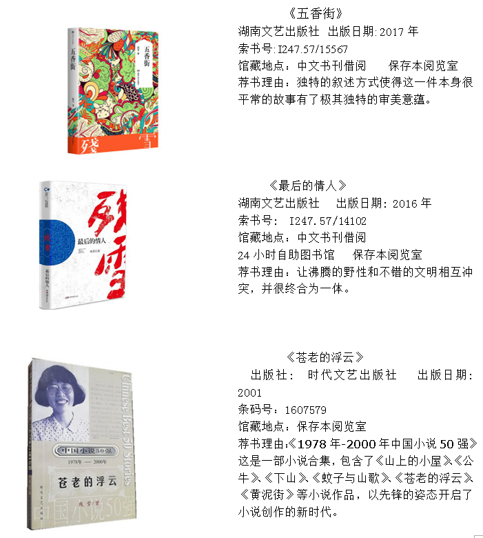 更多更好看的作家残雪的馆藏作品,在这就不一一赘述了,欢迎广大读者来馆借阅或提阅!