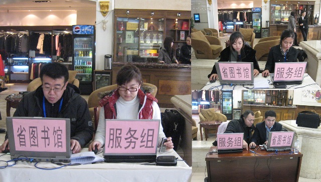 黑龙江省图书馆在驻地一楼大厅设立了现场信息服务台,可为委员提供各类专题、课题信息检索,接发电子邮件,网上传输信息,查询黑龙江省图书馆藏书及相关数据库资料等服务。人大教文处崔处长急需有关改善大学教育方面的资料,当天工作人员便将查到的资料汇集成一份表格提交给他,崔处长对查询到的结果非常满意,称省图提供的信息服务,方便、快捷、周到、细致。哈尔滨代表团的高广生代表,草拟了一份关于《黑龙江省食品安全条例》的提案,想查询其他省份相关条例,以补充完善该提案,工作人员利用馆藏数据资源为高代表搜集了相关文献,还协助高代表完成该提案并发送给相关部门。除代表外,东北网的王记者和黑龙江画报的张记者,也利用我馆的服务平台为后方及时发回报道。会议快结束时,去年人代会四次会议期间我们为其提供服务的嘉峰集团董事长王满玉特地找到我们,对我们一直以来为他们提供的帮助表示感谢!