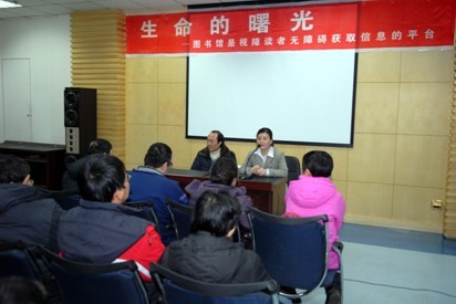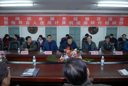 为充分发挥公共图书馆的社会教育职能,努力为残障读者提供全方位的优质服务,推进盲人信息无障碍工作,让广大盲人读者学习掌握专门的电脑软件,在网上漫游,阅读文献、查找资料、交流信息,充分体验数字时代的文化生活。黑龙江省图书馆2011年1月6-7日举办“视障读者服务经验交流会暨指导盲人使用计算机读屏软件技术推广培训班”。黑龙江省残联理事长段有山同志、黑龙江省文化厅副厅长綦军同志出席了开班仪式并做了重要讲话,强调为弱势群体服务是公共图书馆亟待开发的重要职能,要大力推进盲人信息无障碍工作的开展。开班仪式由黑龙江省图书馆馆长高文华主持。