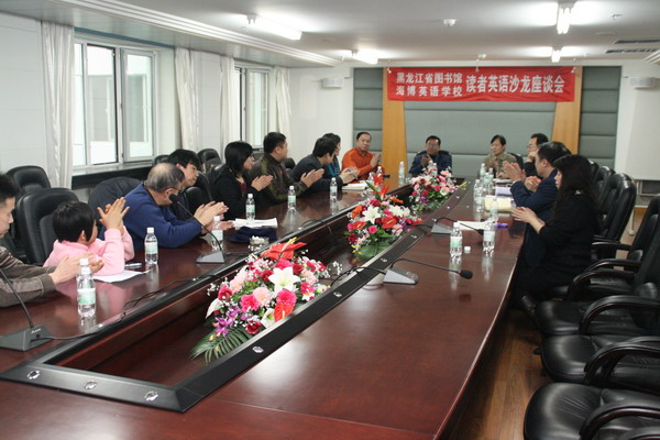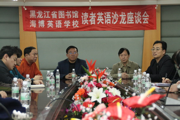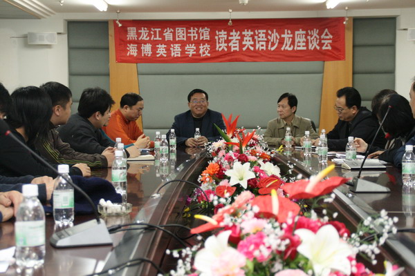 会议由省图教育培训中心主任闻德锋主持,党委书记董绍杰致辞说,英语沙龙从2006年开办至今已有整整五年了,首先向在座的各位拜个早年,同时对长期、免费为英语沙龙提供外教资源的海博英语学校表示敬意,对积极、热心参加沙龙的所有读者表示感谢!中华民族是一个崇尚文化、鼓励读书的民族,而英语是一个国际通用语言,省图举办英语沙龙的初衷就是为英语爱好者搭建一个学习交流的平台,在哈尔滨推广英语口语的普及和提高。这次举办读者座谈会的目的就是希望通过大家面对面的集中交流和反馈,征集建议和想法,改进我们的工作,力争把英语沙龙办的更好,推向一个新的台阶。虽然普及英语口语的工作很难,但是我们希望能够长期坚持下去。