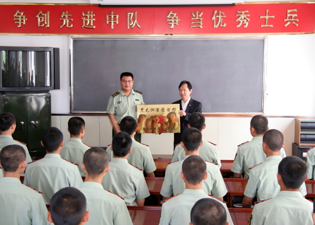 省政府警卫连常年担负着警卫省政府等工作。官兵们军务繁重,文化生活相对单调、匮乏。为了丰富该连队官兵的文化生活,提高官兵的文化素质,我馆于2009年4月在该连队建立了图书流动站,经过四个月的试运行,今日正式挂牌。