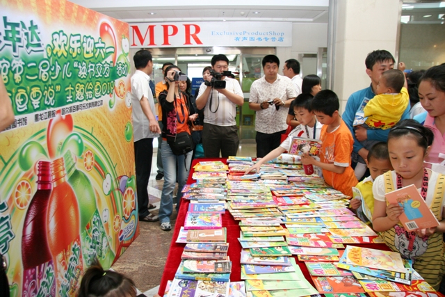 61日上午9点,我馆与黑龙江晨报、哈尔滨百事可乐饮料有限公司联合举办了第二届“少儿换书交友”活动。100余名小朋友带来了互换图书300多册。有的小朋友带来了互换图书10余册,却只换取了一册图书。他说:“我愿意有更多的小朋友和我共同分享阅读的快乐!”为了使小朋友们尽情地发挥想象力,抒发自己快乐、幸福、感激、崇敬的心情,我们还在二楼自习区举办了益智、快乐身心的“庆六一  迎国庆  有‘画’要说”主题绘画活动。50余位小朋友现场作画,虽说他们的画作非常稚嫩,但是却表达了他们的童真和对美好未来的向往。另有20余位小朋友应征黑龙江晨报小记者,填写了小记者申请表。