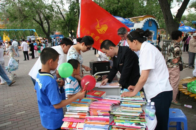 当天,为了方便小读者在自己的节日里读到喜爱的图书,读者工作部联合青少年工作部在儿童公园现场办理读者卡,并展出200余本少儿图书供小朋友借阅。