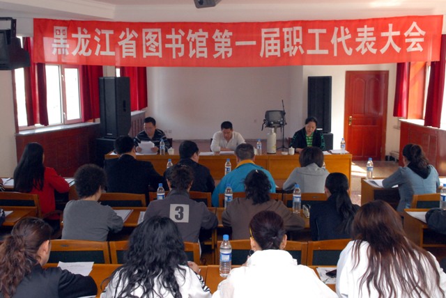 2009年5月20日,黑龙江省图书馆召开第一届职工代表大会。共有29名代表出席会议,占职工代表总数的94%,符合出席法定人数。党委书记董绍杰主持会议并致大会开幕词。