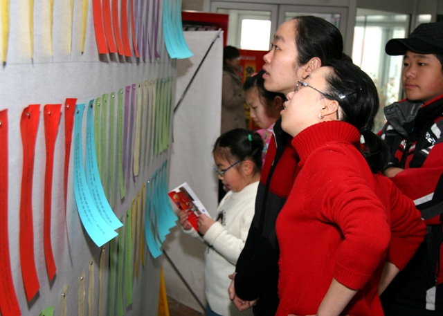 本次活动受到了广大读者,特别是前来自习的高中学生的热烈欢迎。他们三五成群地围拢在试题板前,竞相讨论,有的读者甚至用手机上网进行试题查询确认。一时间我馆一楼大厅热闹非凡。