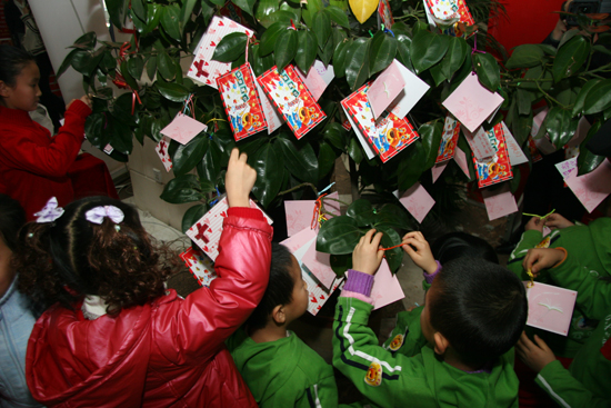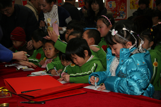 活动尚未开始,省图一楼大厅已经是人潮涌动。许多小读者在家长的陪同下,带着他们写满知心话语的书籍,早早地来到“阅读小笨熊,赠书灾区娃”活动现场。孩子们欲捐赠的图书绝大多数都是近几年出版的内容丰富、装帧精美的图书。有的小读者还带来了自己心爱的玩具和文具。每一位前来参与活动的小读者都十分牵挂灾区的小伙伴们。他们希望通过这次活动,送去他们对灾区小朋友的真挚祝福。同时,他们期盼着以书交友能够与灾区的小朋友建立深厚的友谊。