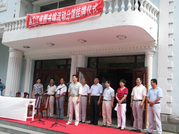 省图书馆副馆长刘继维在挂牌仪式上致辞,他指出:“建立分馆是省图书馆延伸服务范围的一项重要举措。黑河地处边境口岸,是对外文化交流的一个重要平台,黑河图书馆在地方党委政府宣传文化部门的高度重视下,各项工作开展得有声有色,基础工作非常突出。省图书馆与黑河图书馆能够携手建立图书流动分馆,必将对黑河市的群众文化生活产生巨大的推动作用。”