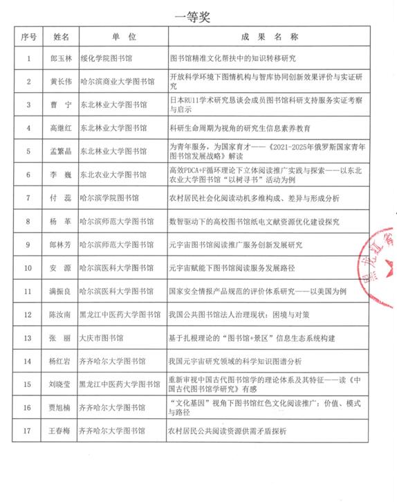 黑龙江省图书馆学会2023年度图书馆优秀科研成果评审结果公布