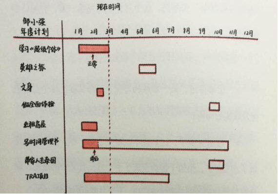 当大家制定了比较清晰的年度目标后,拆书家选取《只管去做》中“甘特图目标管理法”及“倒推分解法”进行讲解引导,帮助大家掌控年度目标的时间安排和进度、适时调整,以及针对一些相对比较复杂或是耗时长的目标,如何运用“倒推分解法”将大目标分解成小目标,以有效地保证目标的达成。