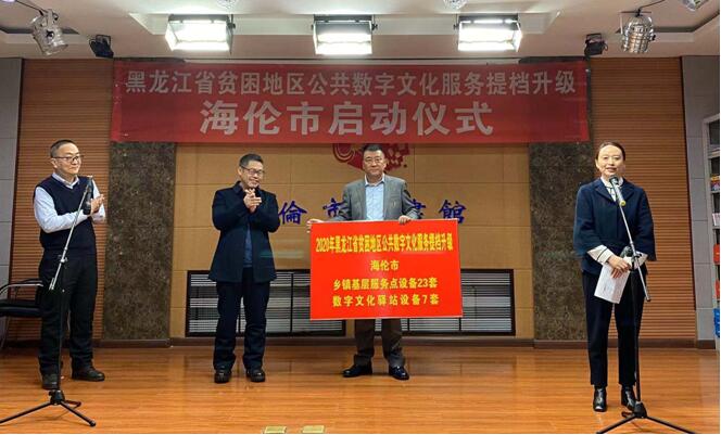本次主题活动一共分五部分:首先,省图书馆为海伦市的23个乡镇建设数字文化服务网点和7个中心村建立数字文化驿站下发了2020年贫困地区公共数字文化服务提档升级公共数字文化设备,这批设备的下发做到海伦市全部乡镇公共数字文化远程服务、移动服务的全覆盖。同时指导海伦市图书馆发挥好公共数字文化服务中心的作用,指导乡镇、村用好公共数字文化服务设施,把数字文化资源送到百姓身边,送到百姓的家里,推进数字文化取得实质性进展。