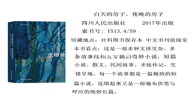 我馆收藏了两位作家不同时期的文学作品,为您提供阅览和借阅服务。作者与众不同的写作方式和深刻内涵的表述,相信会为您带来不一样的阅读感受;欢迎各位读者来我馆品评鉴读、一睹为快!
