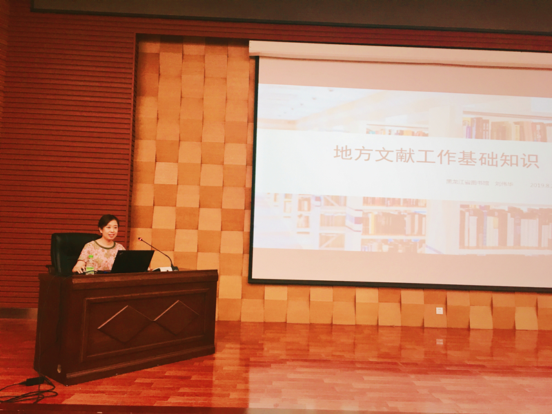 调研组一行首先来到大庆油田图书馆,与油田图书馆进行了深入的业务交流,重点参观了“地方文献馆藏室”。“地方文献馆藏室”以弘扬铁人精神、传播石油文化、收藏油田资料、宣传本土作家为主要功能,集参观、学习、教育、研究于一体,开放后得到读者的广泛好评,收到了良好的社会效益。此行,刘伟华副主任还为油田图书馆做了题为《地方文献工作基础知识》的讲座,对地方文献业务知识进行了全面系统的讲解,进一步明确了地方文献工作的重要性,收到了良好的效果。