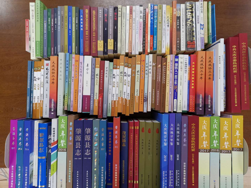 在大庆市图书馆,调研组一行参观了“地方文献馆”,对该馆地方文献工作的整体情况有了进一步的了解。大庆市是中国最大的石油石化基地,在经济建设和石油工业布局中具有重要的战略地位,图书馆地方文献业务工作开展的全面而有特色。在馆领导和工作人员的共同努力下,该馆地方文献藏量丰富,形成了大庆精神、铁人精神、石油文化、移民文化、民族文化、湿地文化等若干专题,文献特色鲜明。同时,大庆市馆和当地部分地方文献产出单位建立了业务往来,形成了良好的征集机制。此行,调研组重点对大庆市图书馆提交的2500条地方文献书目数据进行了审校,对存疑数据进行了核实。调研组还就大庆地区灰色文献的征集情况和业务人才培养等工作进行了探讨,对文旅融合背景下充分挖掘地方文献、推广红色旅游等内容提出了具体要求。