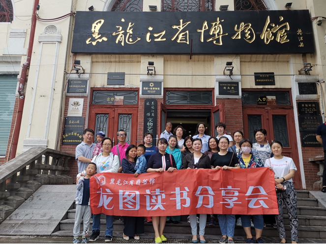 黑龙江省博物馆是综合性省级博物馆,位于红军街50号,它是黑龙江收藏历史文物、艺术品和动、植物标本的中心,是地方史和自然生态的研究中心之一,也是哈尔滨市一类保护建筑,省级文物保护单位。同时还是宣传地方历史文化和自然资源的重要场所。据讲解员讲解省博现有各类藏品约11万余件,最值得关注的是馆藏镇馆之宝——金代铜坐龙、嘉荫县龙骨山出土的距今6500万年的白垩纪晚期平头鸭嘴龙和从青冈县征集到的距今2万年的第四纪披毛犀、猛犸象三具大型化石骨架。这些珍品都曾在国内外多次展出,蜚声海外。博物馆在做好基本陈列的同时,每年还都适时举办和引进临时展览,利用现代化的声、光、电等展示手段,引来了观众的参观热潮。一个多小时的参观中,读书会读者朋友们遨游在省博物馆的历史长河中,聆听文物讲述历史,感受源远流长的龙江文化。
