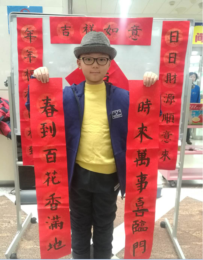 我馆忠实小读者王昕昊自创春联“书香盈岁月,新桃换旧符”,字里行间流露出对读书的热爱之情。