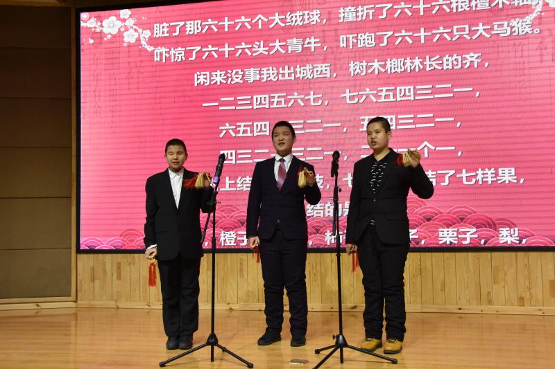 联欢会在开场舞《美丽中国唱起来》中拉开帷幕。随后特殊群体读者纷纷登台,载歌载舞,尽情欢唱,抒发对生活、对图书馆、对阅读的由衷喜爱之情。此次联欢会共呈现了朗诵、歌舞、快板、葫芦丝等多种表演形式的节目13个,风格迥异,精彩纷呈,赢得了台下观众的阵阵掌声。参加表演的演员都是省图书馆特殊群体的读者,虽然他们有的听不到曼妙悦耳的声音,有的感受不到明媚的阳光,但是他们依然用舞姿、用歌声表达着对生活的热爱。老年读者也用舞蹈、朗诵、小合唱、书法等形式,彰显了他们不忘党恩、乐观自信、积极向上的精神风貌。