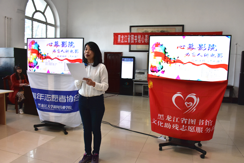 本次巡讲活动由省图书馆无障碍服务部副主任、心幕影院巡讲活动负责人王雪红带队,在黑河市爱辉区图书馆领导的大力支持下,在黑河市、区文广新局、残疾人联合会的精心组织与配合下,共有近30位视障者参加了此次观影活动。黑河市文广新局副局长李秀娟、黑河市残疾人联合会副理事长刘亚华、爱辉区文化局副局长陈思、爱辉区残联副理事长李丽、爱辉区图书馆馆长黄士娥也在百忙之中亲临活动现场。