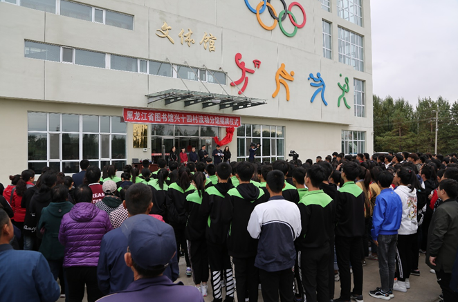 高文华馆长也在仪式致辞中谈到,兴十四村今天的发展凝聚了几代人艰苦创业的心血。公共图书馆是一个民族一个地区文明成果传承传播的重要平台,是全体公民自由获取文化信息的重要载体,是人民接受终身教育的精神家园,兴十四村发展到今天这样一个富裕的集体,从来不缺对文化的渴望和向往,今天在这里建立黑龙江省第一个乡村图书馆分馆和数字图书馆分馆,就是要把我们兴十四村这个全国农业的先进典型和全国农业乡村振兴的重要榜样更好的展示在全国人民面前。通过图书馆可以更好地传播古今中外的优秀传统文化,更重要的是传播兴十四村人民艰苦创业,走共同富裕道路,一直发展到今天坚定不移沿着社会主义共同致富理想去奋斗去前行的辉煌事迹。所以公共图书馆不只是传承文明,更是传播弘扬我们集体精神,弘扬艰苦创业精神的载体和功能,我们在这里建设省图书馆的流动分馆、数字分馆,不仅提供经常更新的纸本图书,更是让我们能够共享所有海量数字文化资源。这仅仅是我们所做的第一步,在以后的工作中,我们将在甘南县十个乡镇,建设数字文化服务点,在20个村建设数字文化驿站。把我们的公共数字文化服务真正普及到甘南所有乡村,让所有公民都能自由平等的获得文化资源,也希望大家广为利用省图书馆的资源,把这里作为终身教育的大课堂,我们会尽我们最大的努力为大家做好服务。