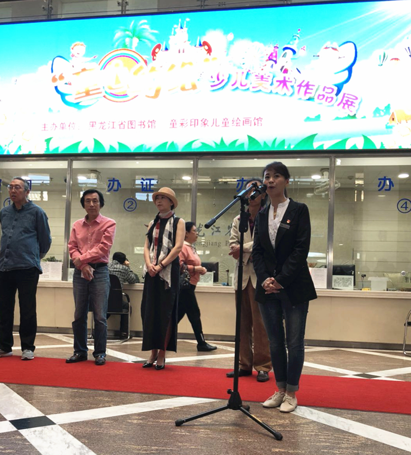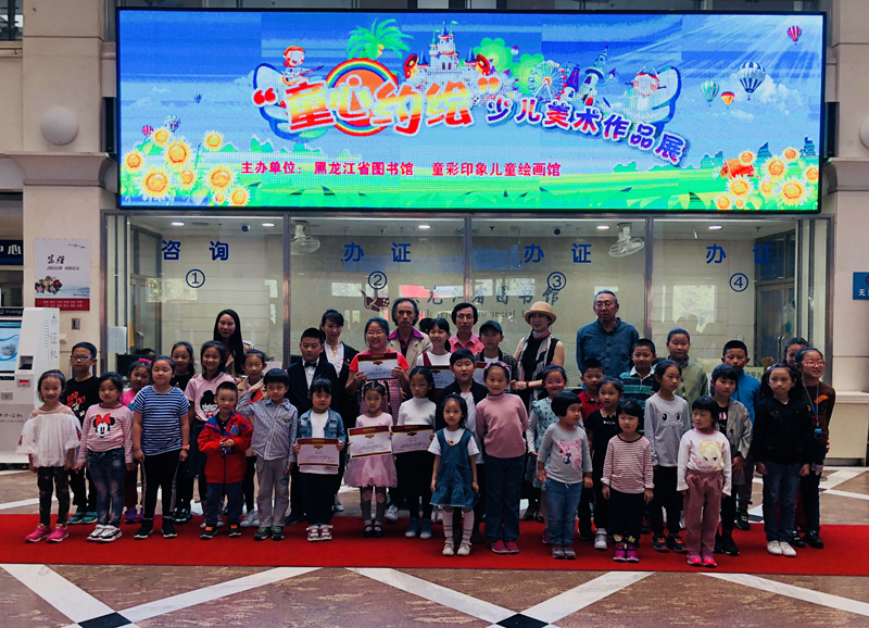 此次少儿美术作品展是黑龙江省图书馆与童彩印象绘画馆联合举办的,共展出近三百幅少儿美术作品,小作者年龄在3-12岁之间。每幅作品尽显童心,彰显个性,孩子们用灵巧的小手以及丰富的创造力,表达了对美的理解以及对美好事物的向往。开幕仪式上,张泽新院长及省图书馆少儿部程岩主任先后为本次活动致辞,与会领导嘉宾为获奖小作者进行颁奖,随后一同参观了美术展,哈尔滨都市生活栏目对活动全程进行拍摄。
