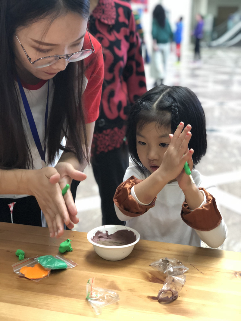 这次开幕活动中,我们还特别设置了操作体验区,前来参加活动的小朋友可以尝试各种美术DIY,家长们也倾情互动与孩子一起动手,在美术的海洋里畅享童趣。