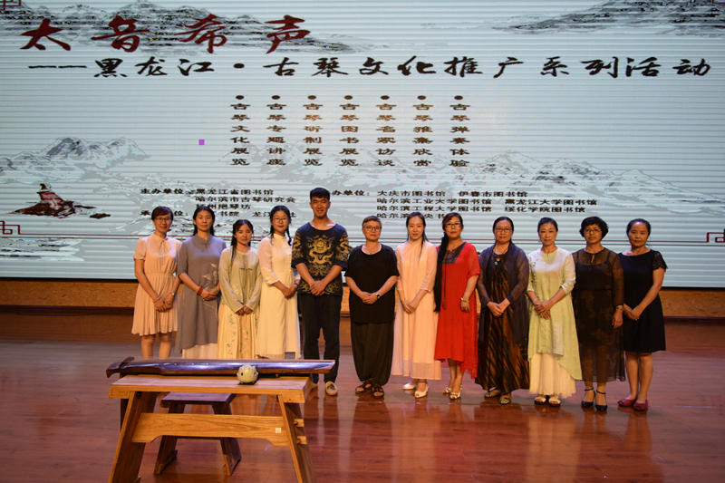 2018年7月17日,“太音希声——黑龙江·古琴文化推广系列活动”走进伊春地区,在中国图书馆学会“阅读推广人”培训行动第十一期培训班上,举办了文化讲座与艺术展演相结合的古琴文化推广活动,来自全国各地200余位与会代表观看了古琴雅集。